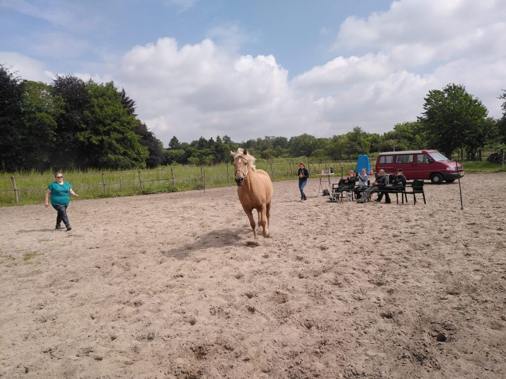 De buitenbak is 21×42 meter. Aan de rand staat een mooie bank waar kijkers kunnen zitten. Gezien de vele strenge eisen die gelden voor de Eng, is onze locatie niet overdekt en beschikt niet over kunstlicht. Wel zijn we erg blij met de centrale ligging. Bovendien is de afwatering er van nature goed.